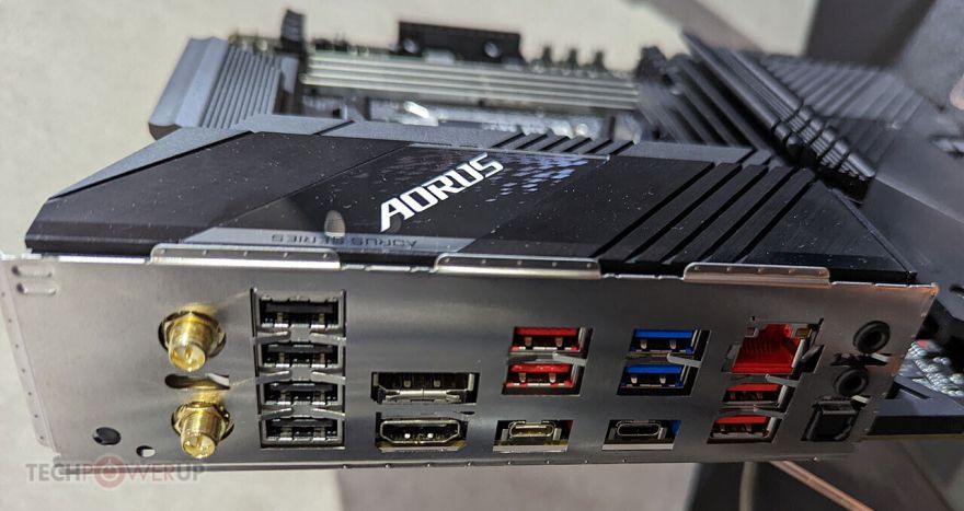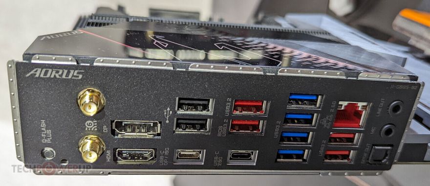 마더보드는 AORUS Master와 많은 유사점이 있지만 후면 I/O 플레이트에 2개의 USB 4 포트를