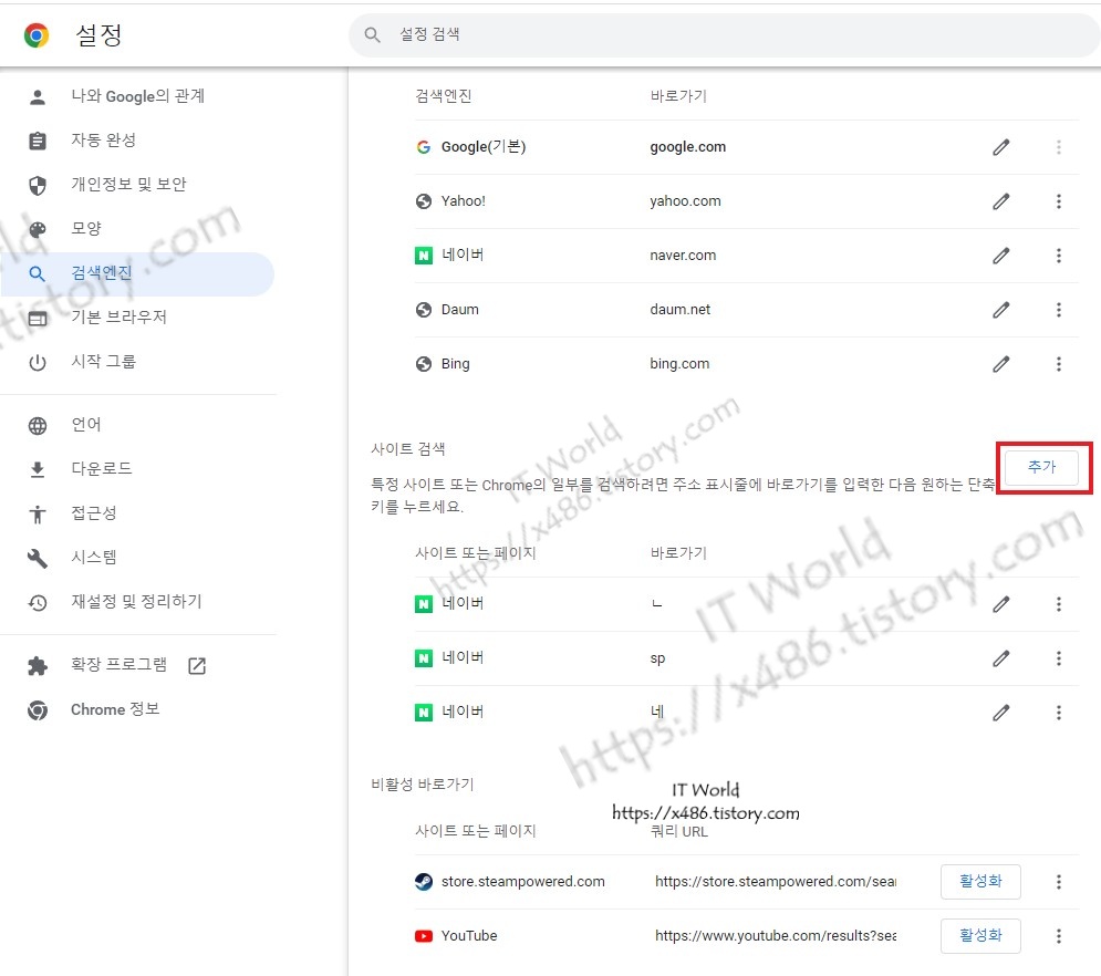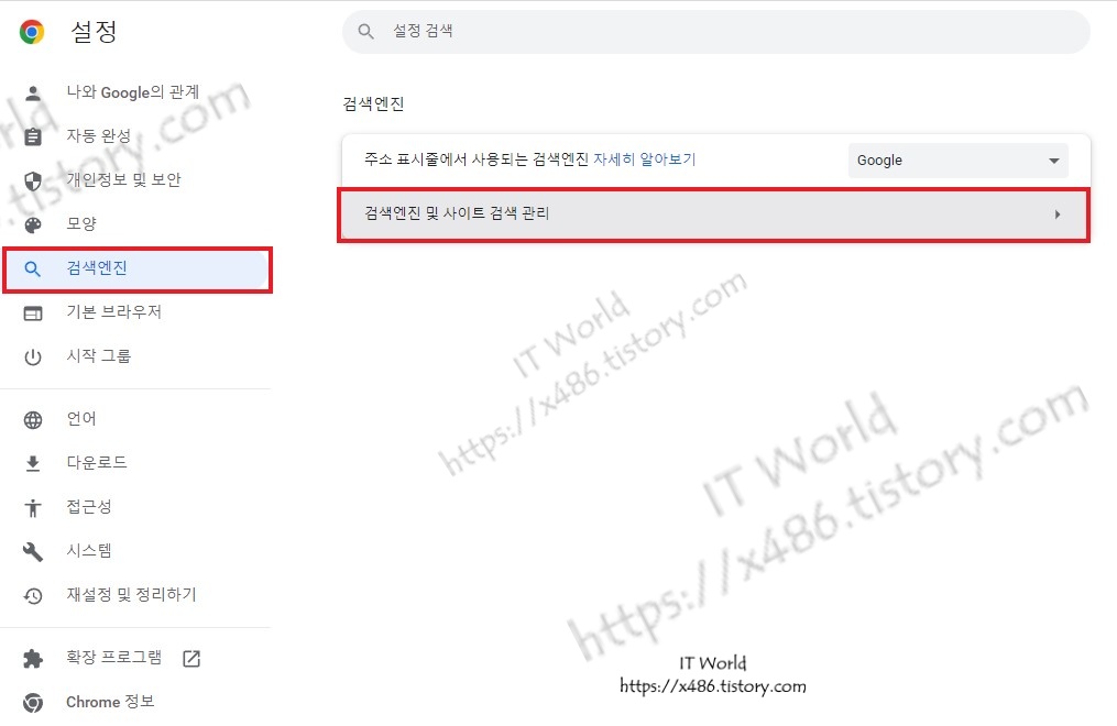 좌측 메뉴에서 "검색엔진"에서 "검색엔진 관리" 클릭