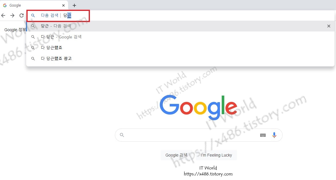 2. "다"(지정된 단축키) 타이핑 후 한 칸 띄면 "다음 검색"으로 변경