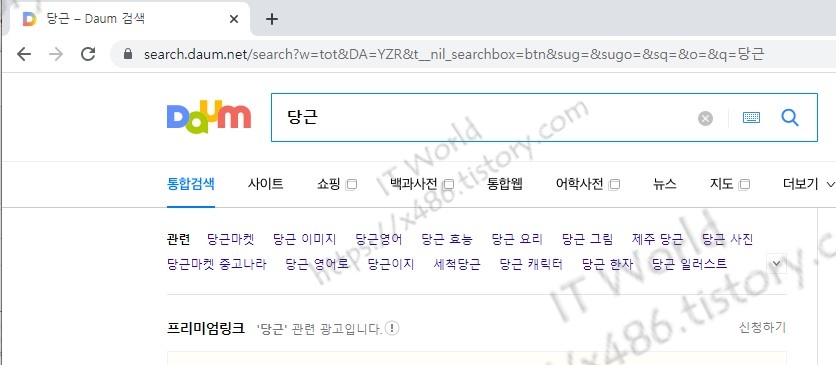 예를 들어 다음 검색으로 "당근"을 검색한다면