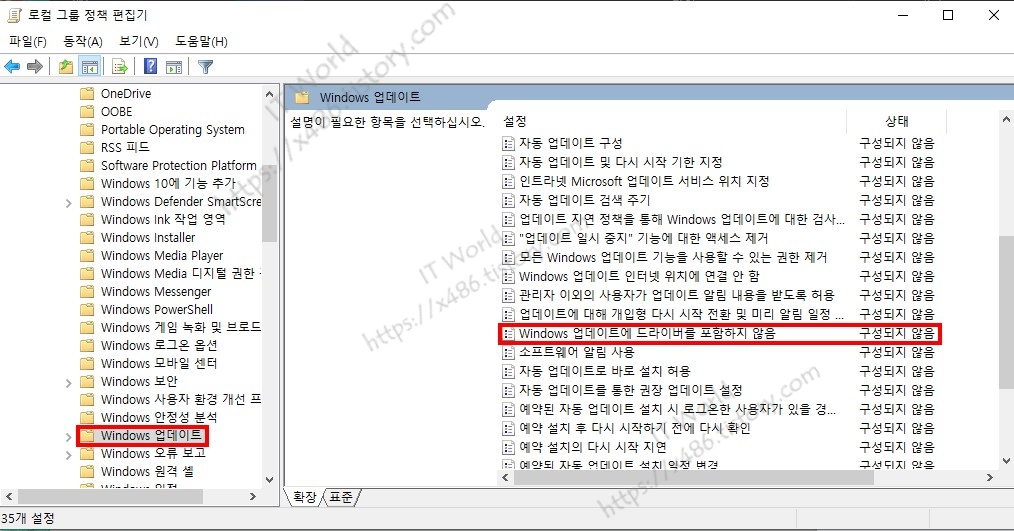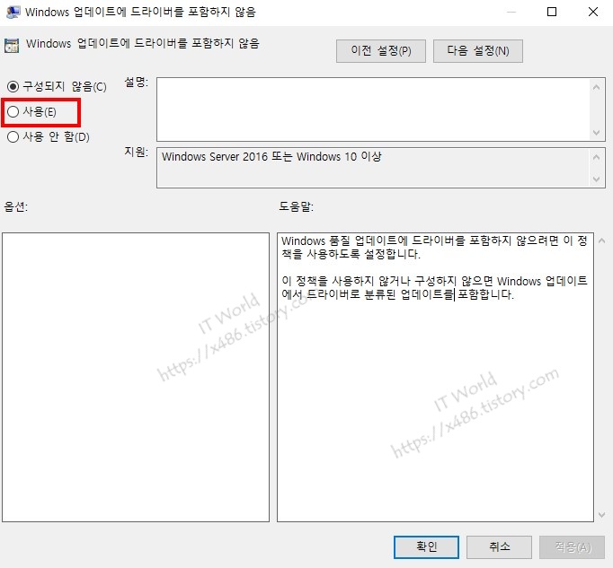 Windows 업데이트에 드라이버를 포함하지 않음 <사용>