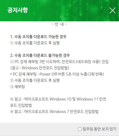 해결 패치와 알약 삭제 방법입니다.