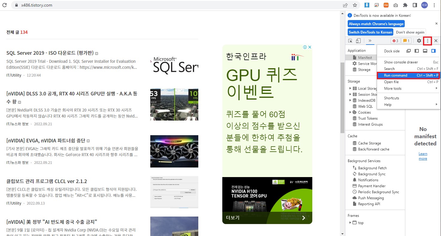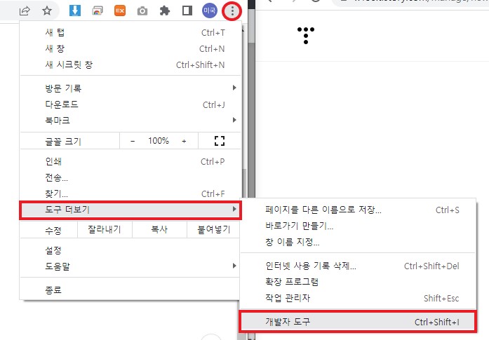 개발자 도구가 실행되면 옵션에서 컨트롤 툴에서 실행창을 불러옵니다.