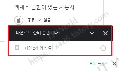 우측 하단에 2개의 파일을 압축하여 하나의 파일로 다운로드 시작하고