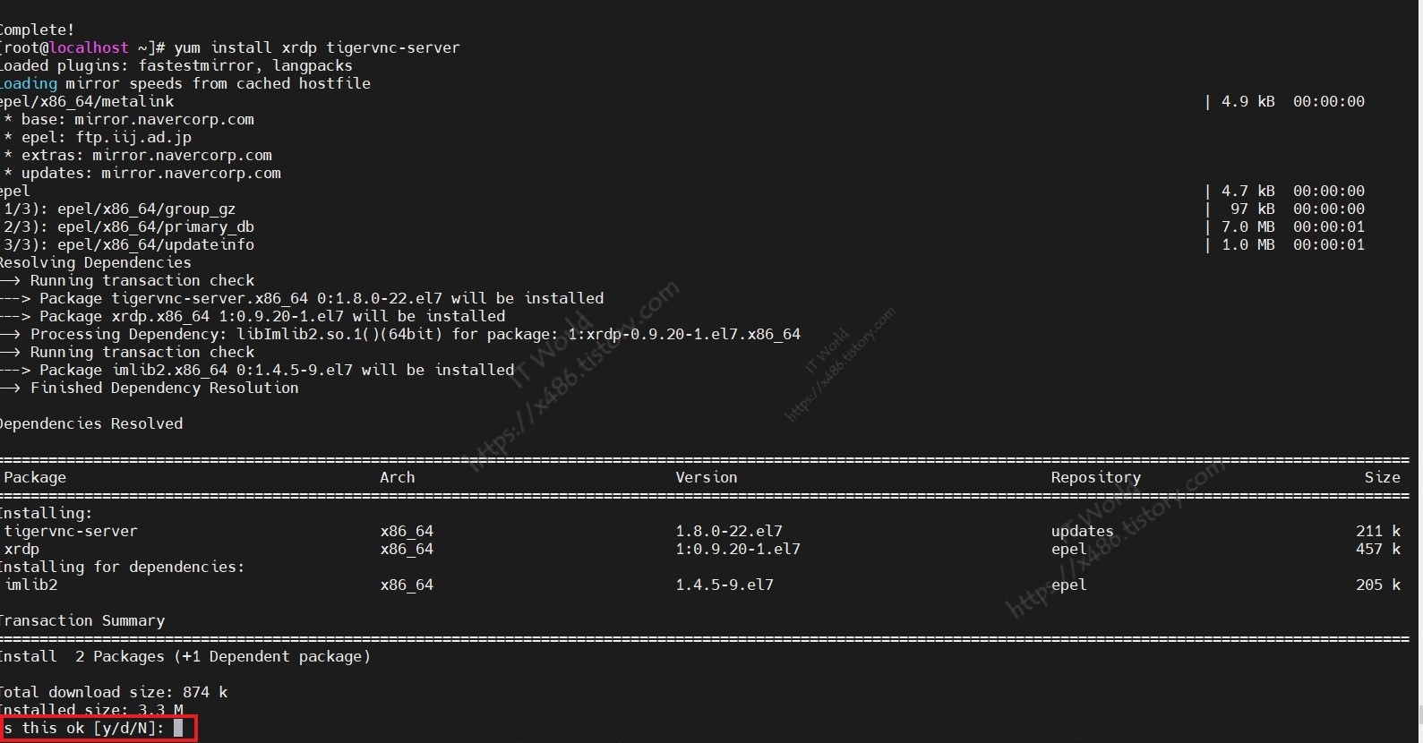 중간에 Y 한두 번 눌러주면 패키지 설치가 완료됩니다. (대략 5~10분 소요)