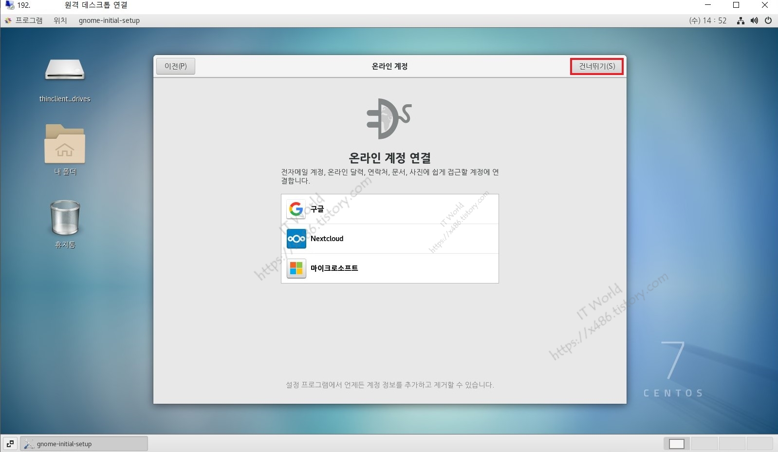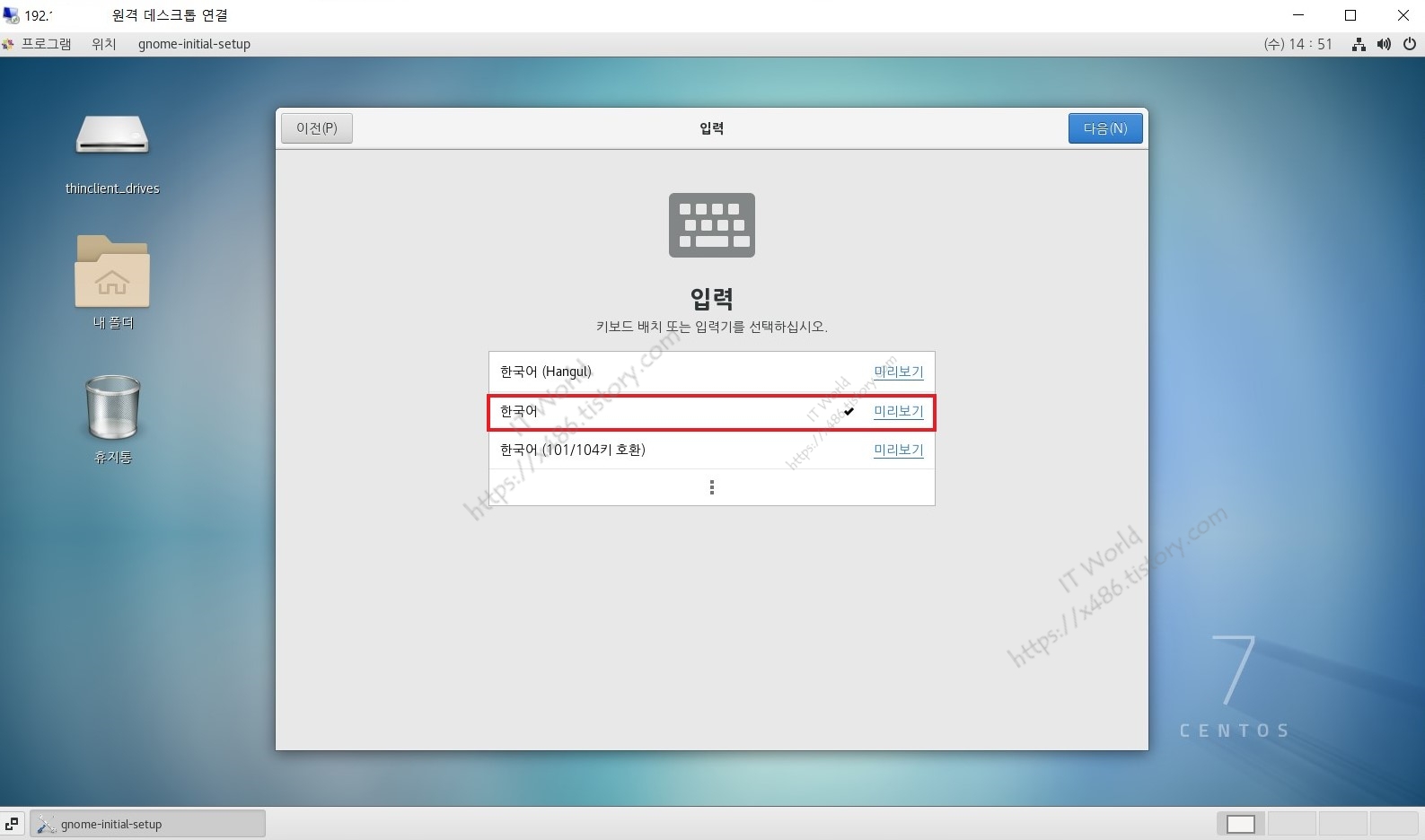 선행되어야 할 부분은 GUI(GNOME Desktop) 환경이 구성되어야 합니다..