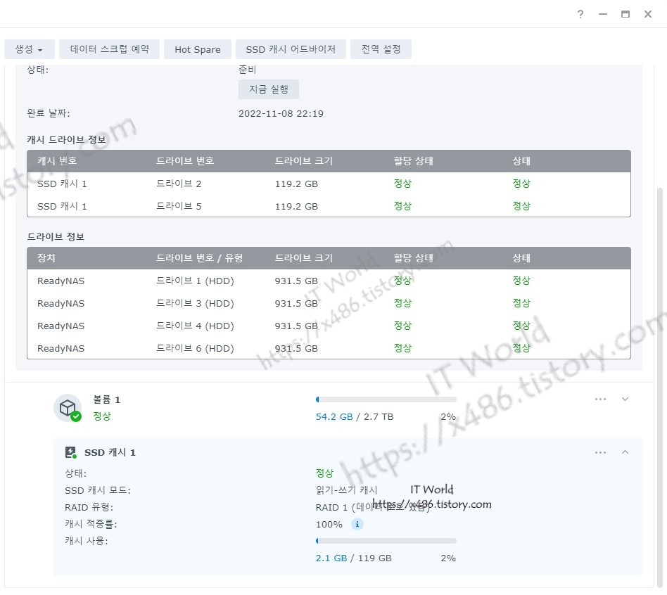 만약 장착한 HDD가 순차 적으로 사망하면 2TB NAS용 하드 구입해 교체 예정이나
