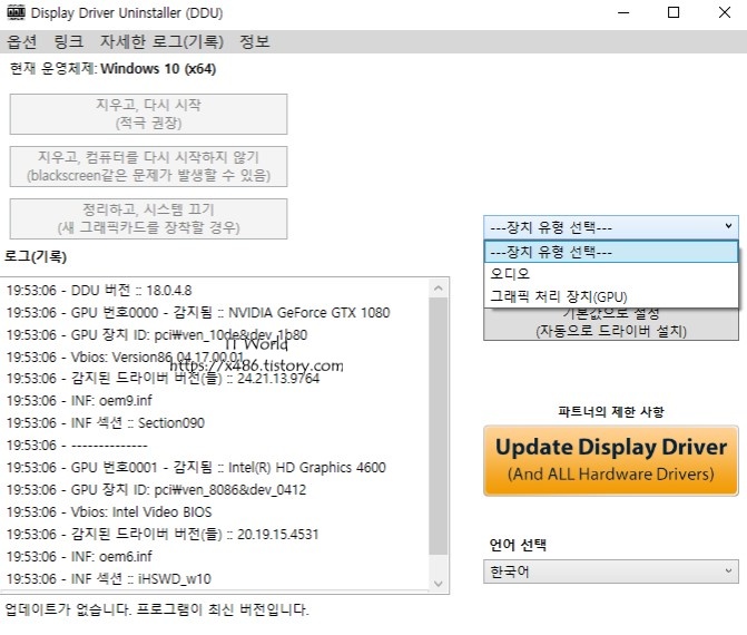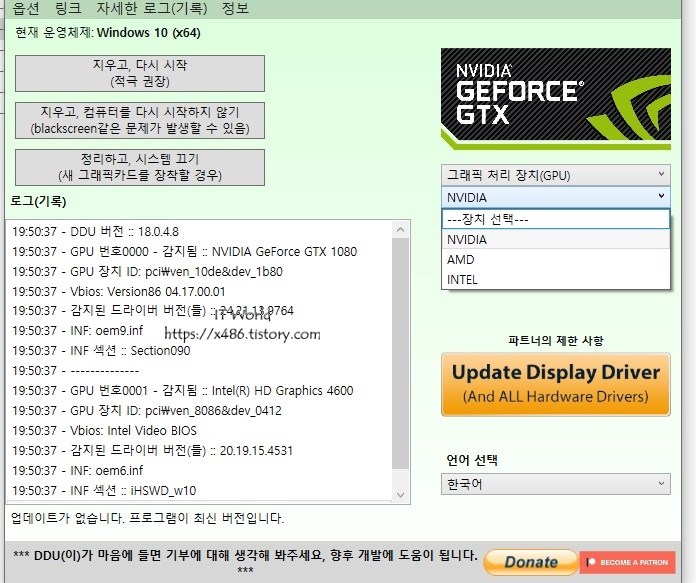 1. DDU는 인텔(INTEL), 엔비디아(NVIDIA), 에이엠디(ATI) 드라이버 삭제 하는데 사용