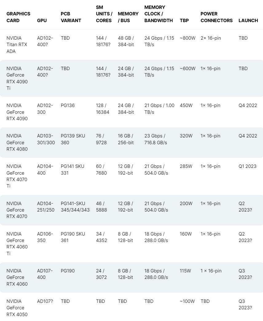 NVIDIA GeForce RTX 40 시리즈 그래픽 카드 라인업(루머)