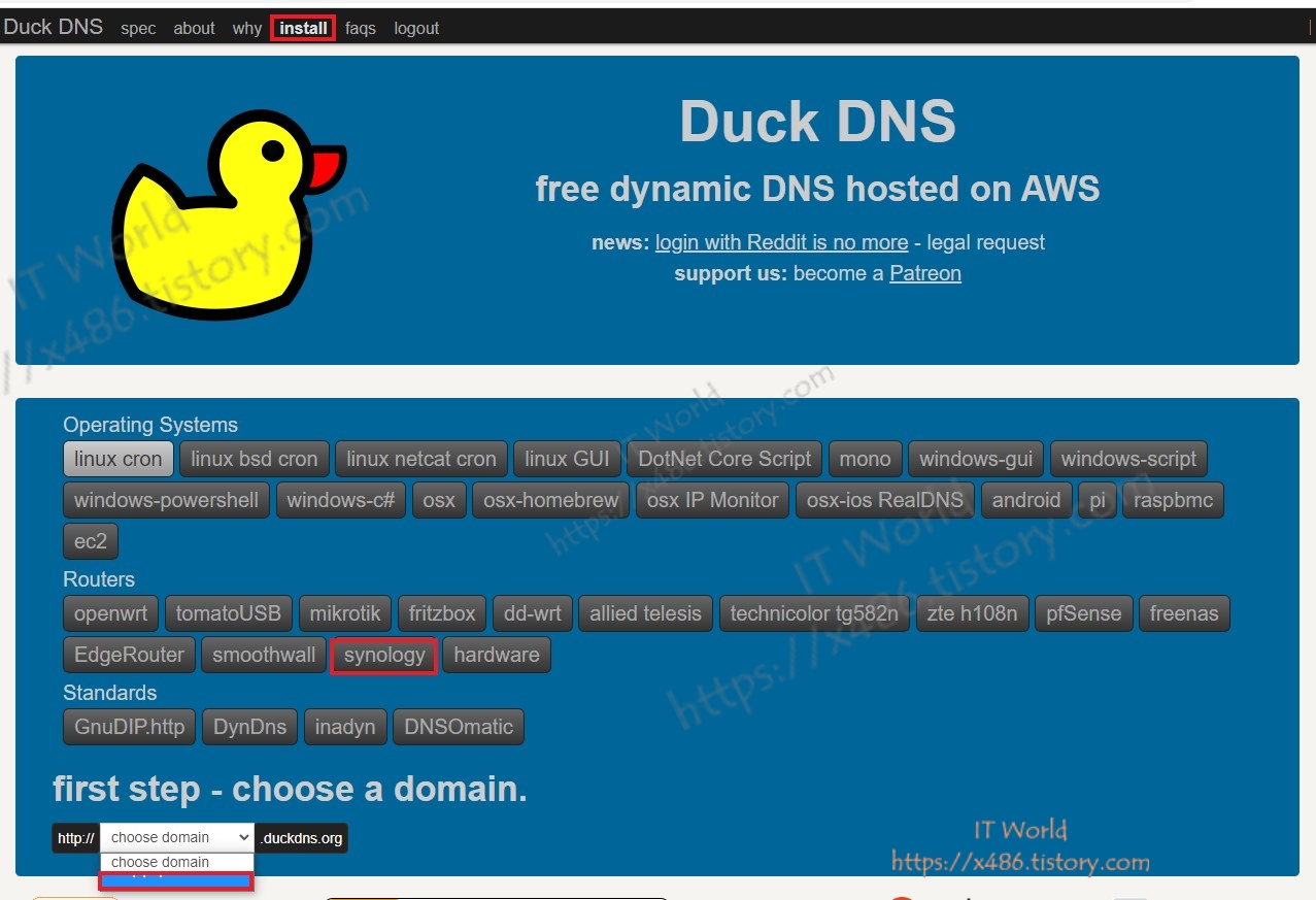 2. 인스톨 > 시놀로지 > 사용하는 도메인 클릭