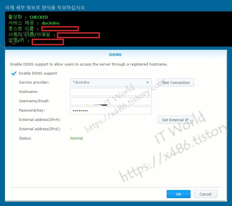 시놀로지 제어판 > 외부 액세스 > DDNS 탭 > 공급자 사용자 지정