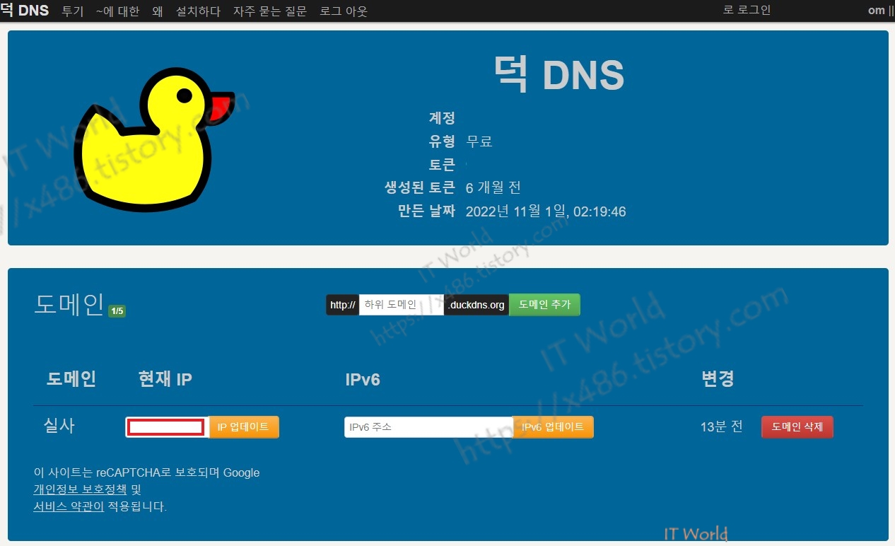 1. 도메인 부분에 변경된 아이피 입력 후 업데이트