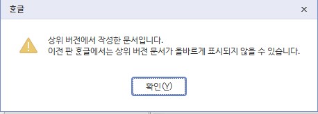 확장자가 hwp 파일은 상위, 또는 하위 버전일 경우 경고문만 송출되고