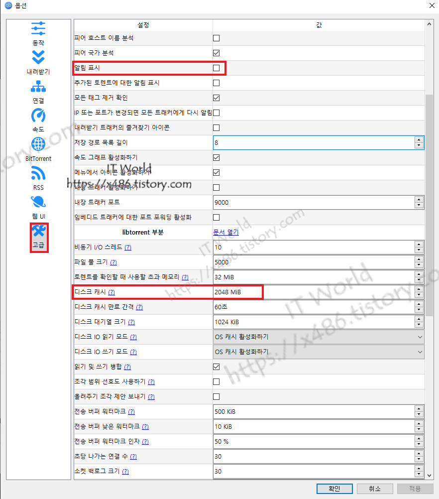 µTP 프로토콜에 속도 제한 적용 체크해제