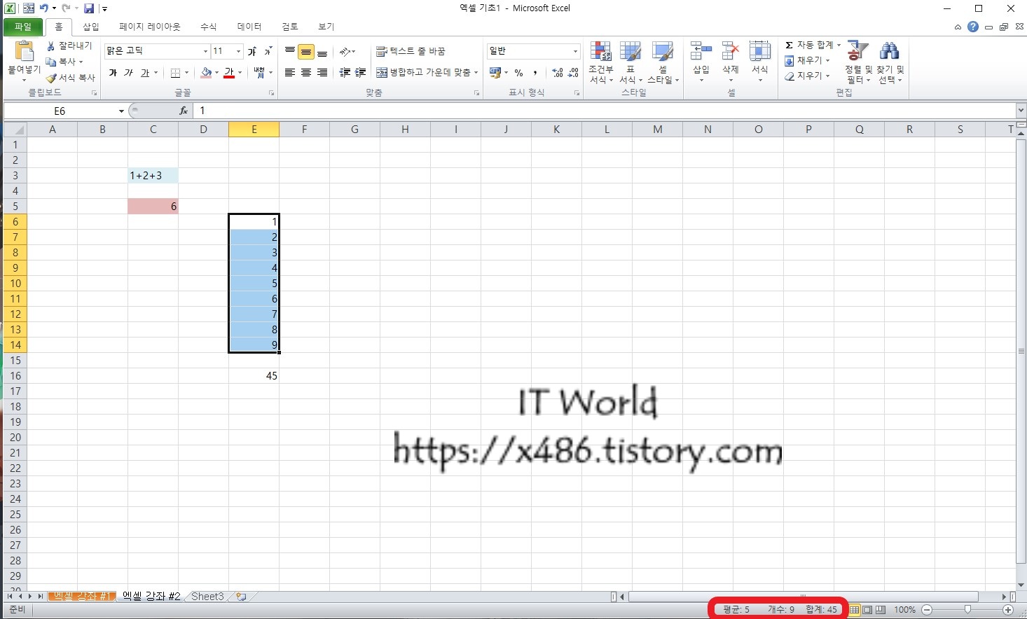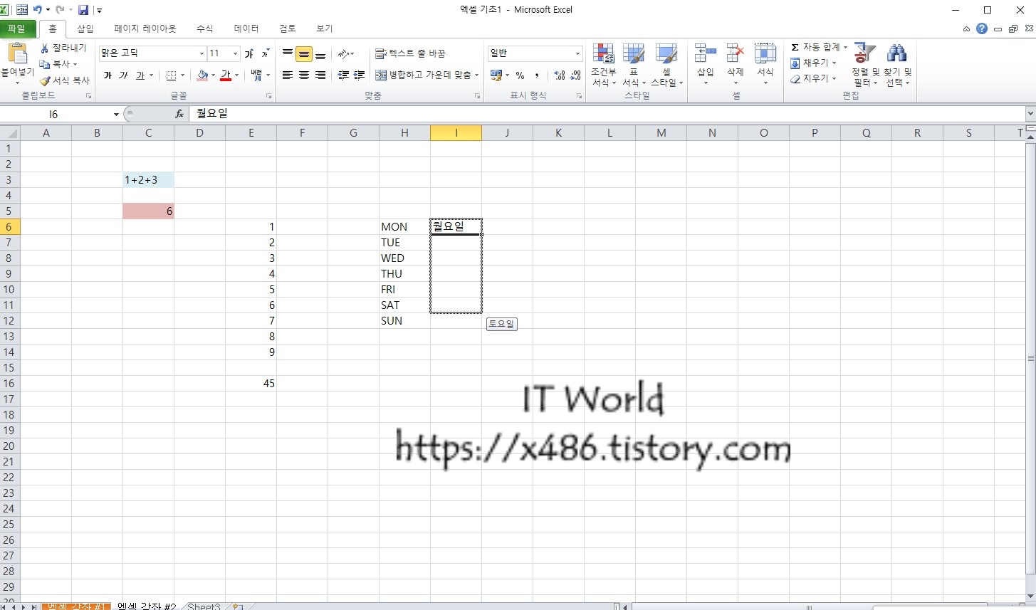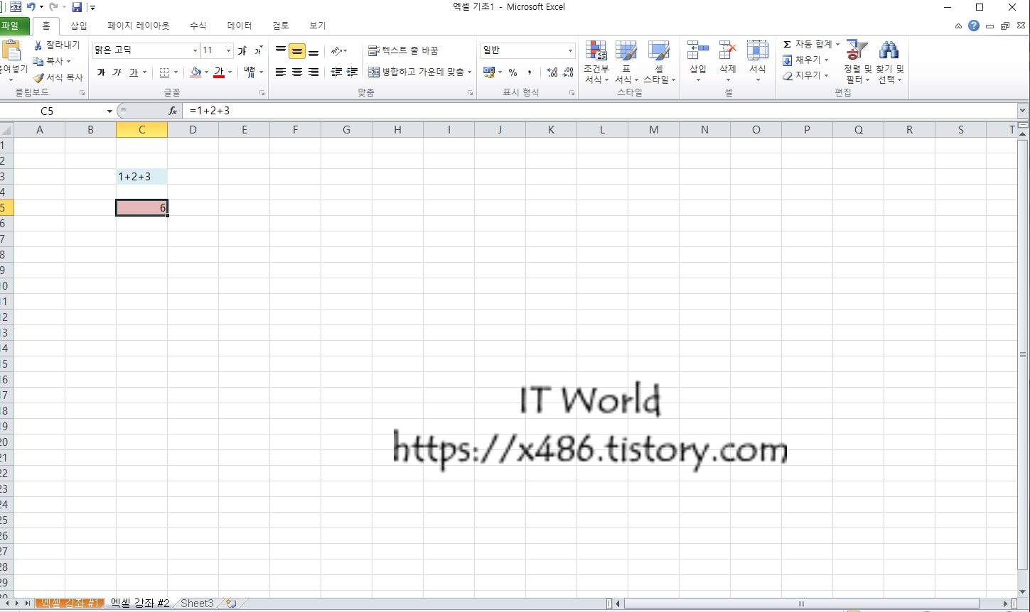 쉽게 C3 셀에 1+2+3 이란 데이터를 입력해 보겠습니다.