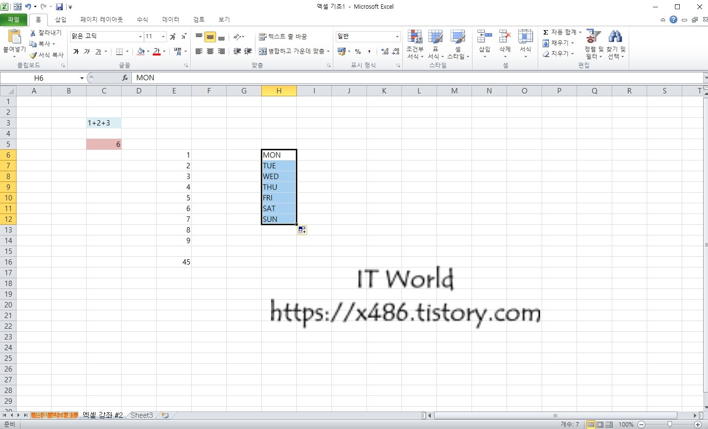 이것은 연속 되는 숫자, 문자, 날짜, 요일 등 모두 적용 가능 합니다.