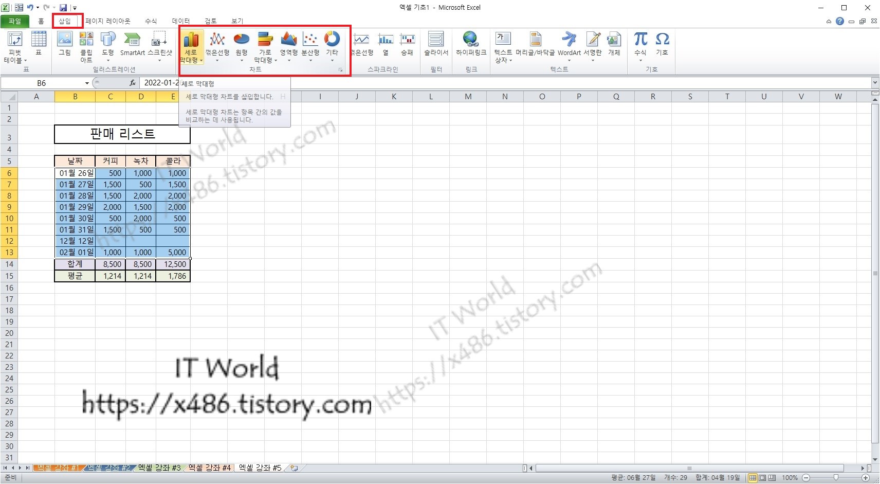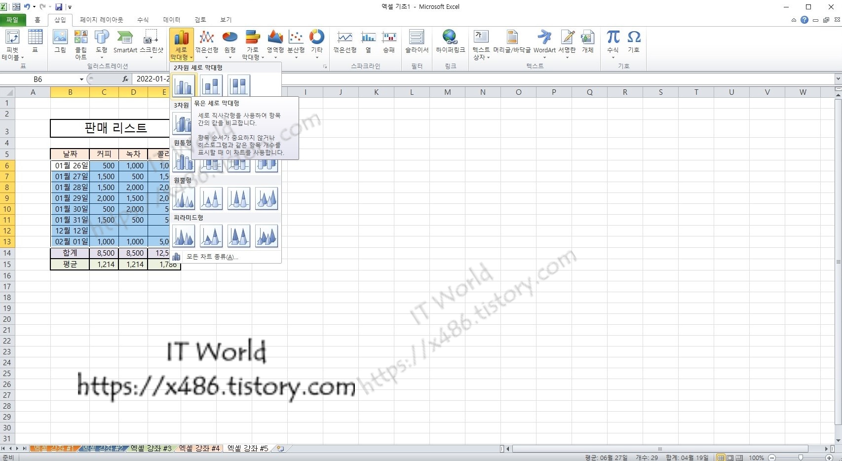 먼저 그래프로 표시 하려는 항목을 드래그로 영역 설정 해 줍니다.