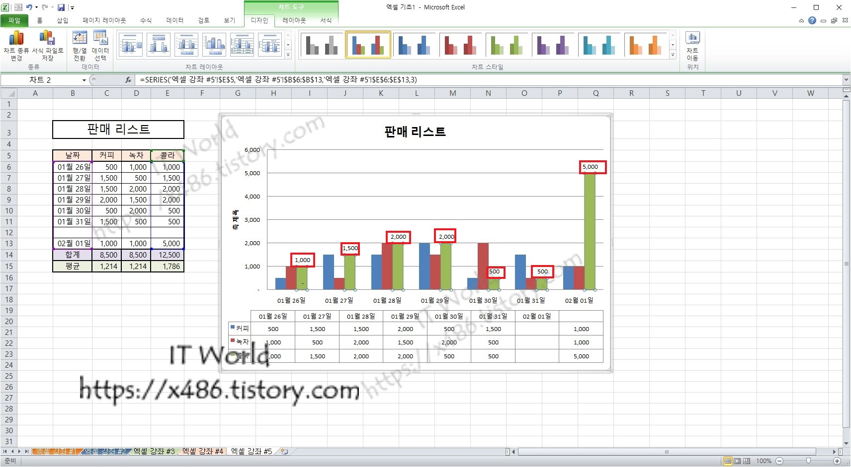 수정 해 주면 됩니다. 위 차트 같은 경우 품목 기준, 날짜는 색으로 인식 하였지만