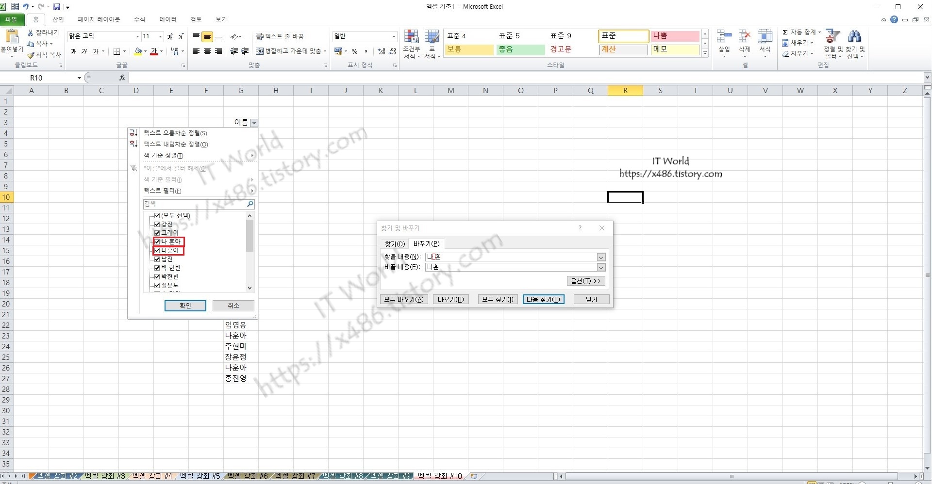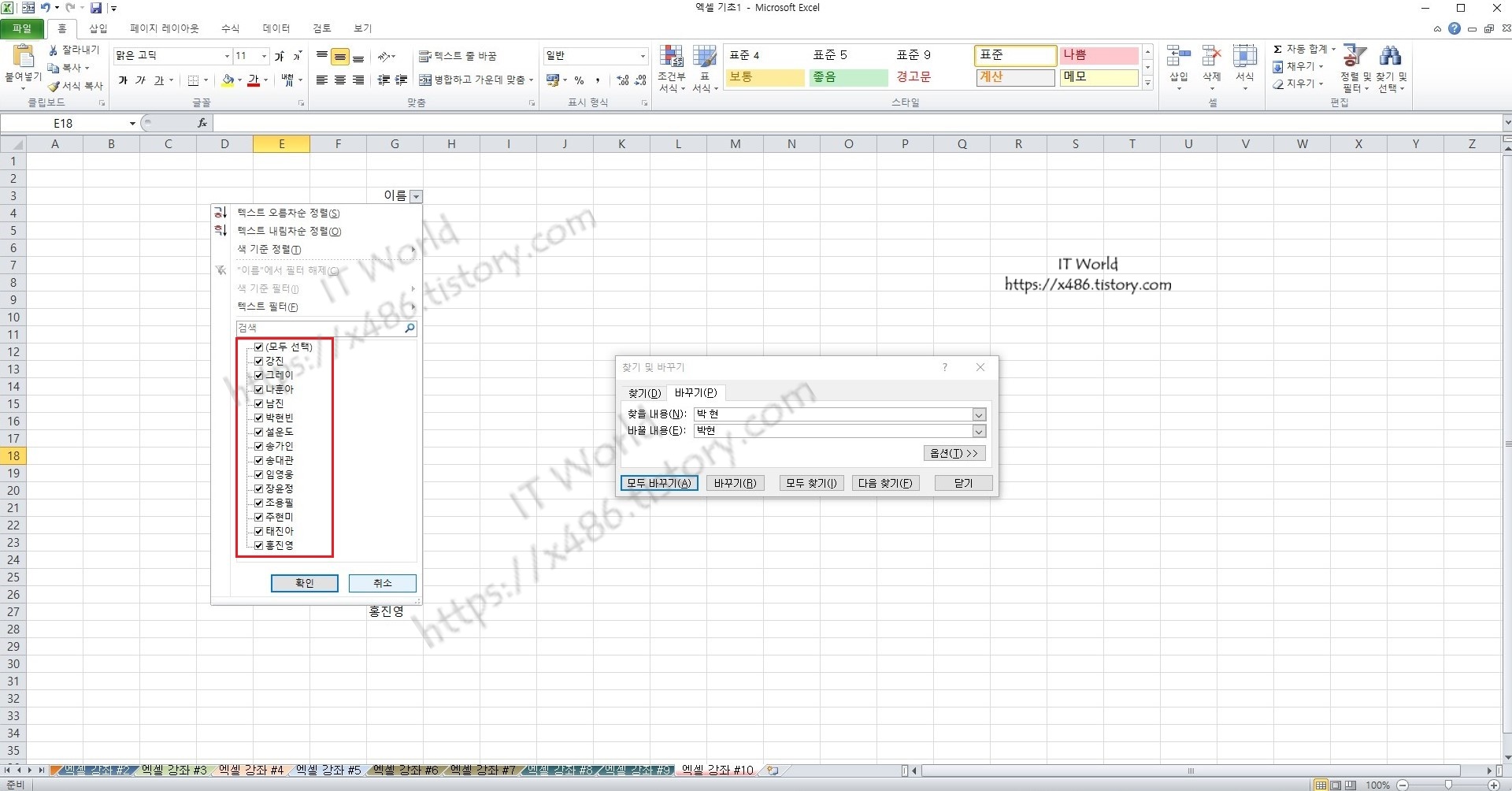 원하는 항목을 찾고 나서 일괄 또는 부분 수정하는 방법입니다.