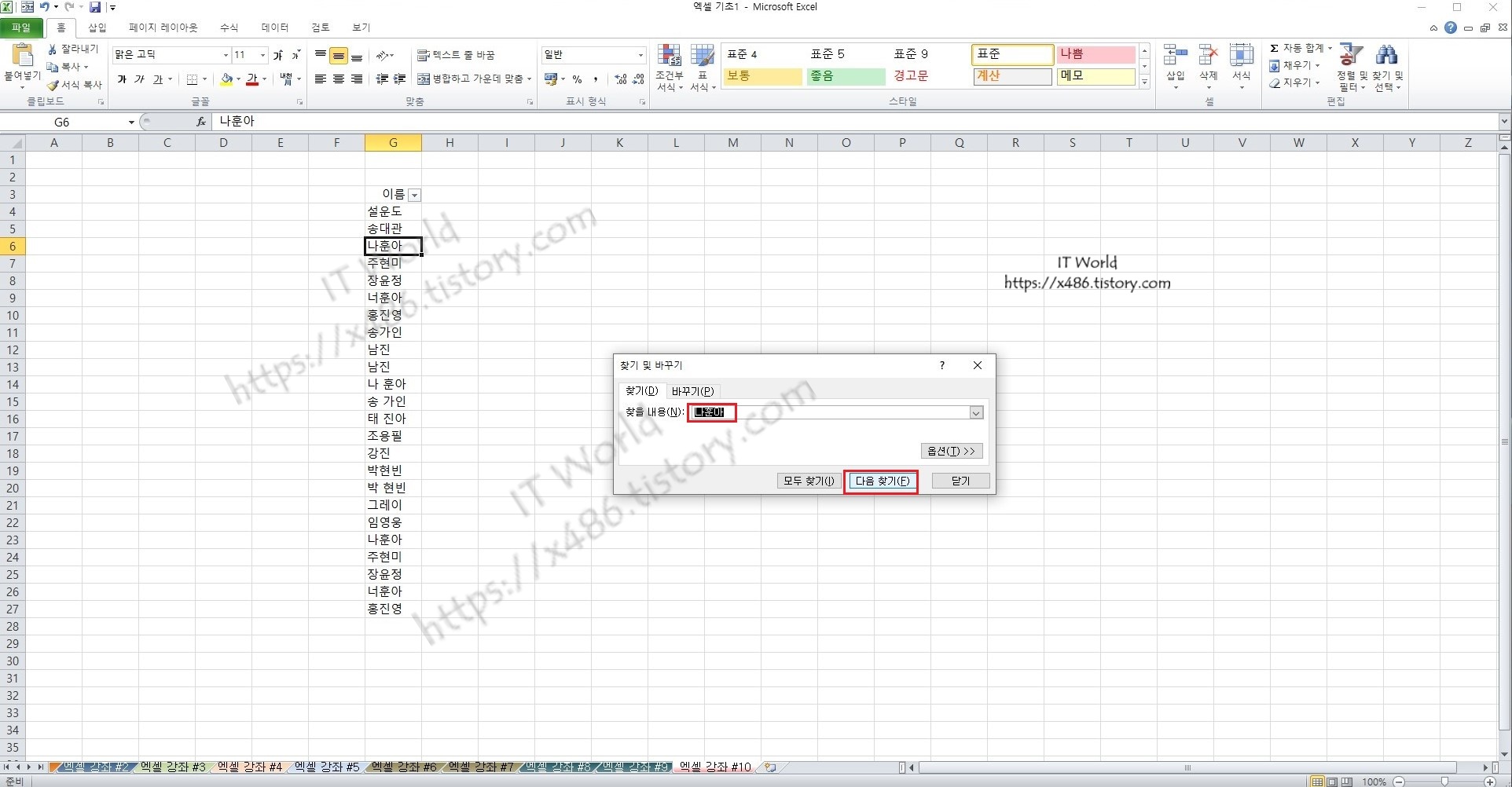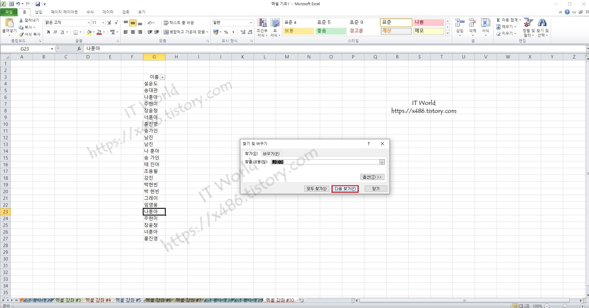 만약 중복되는 항목이 있을 경우 다음 찾기를 한번 더 클릭해주면 다음 위치로 이동됩니다.