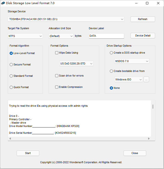 Disk Storage Low Level Format Software for Windows