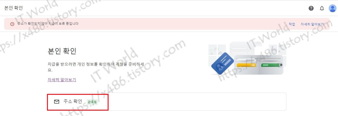 '주소가 확인되지 않아 지급이 보류 중입니다.'라는 주소 확인 문구가 출력됩니다.